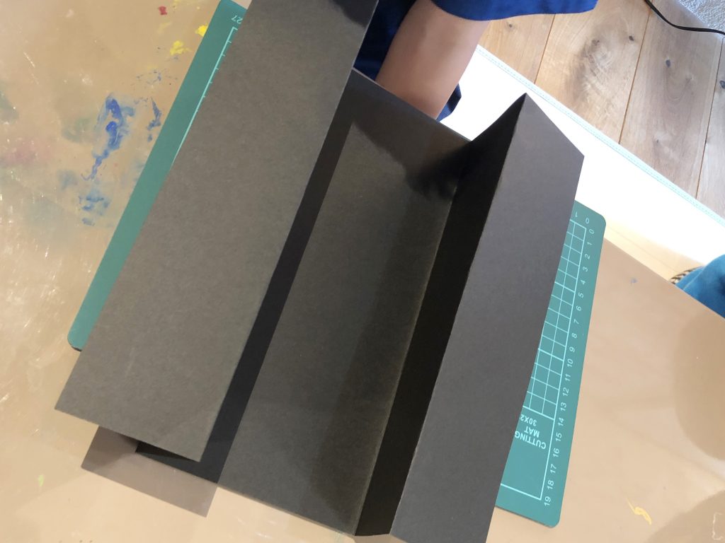 黒い紙を4回ほど折ります。