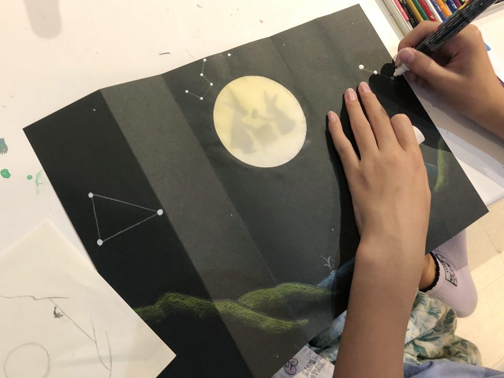 みんな思い思いに自分なりの夜空の風景を作品にできましたね。