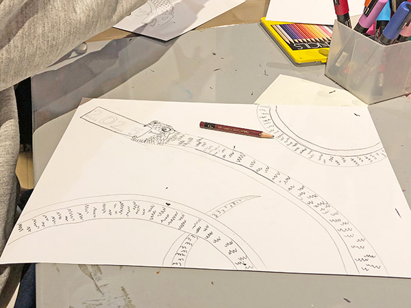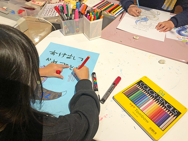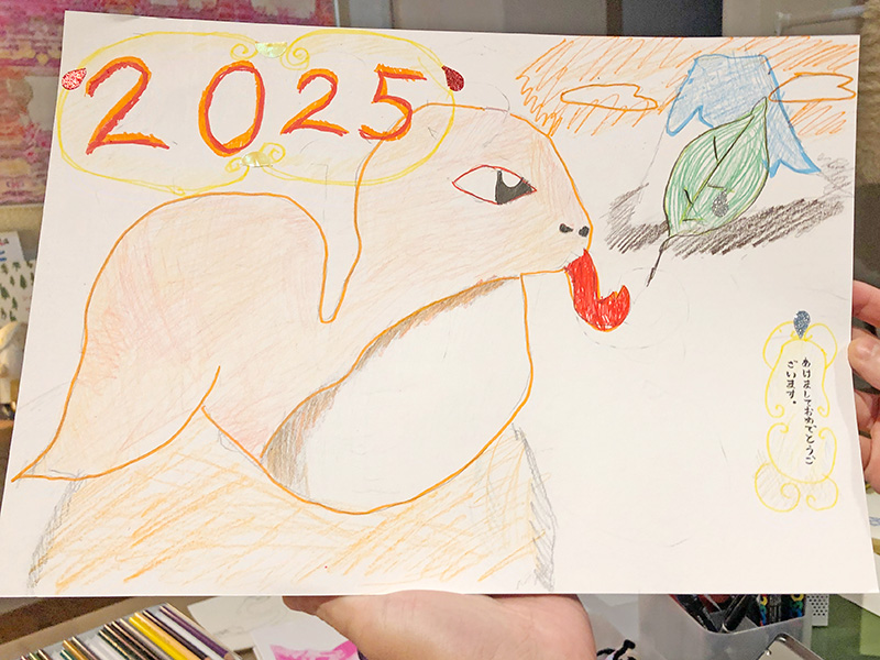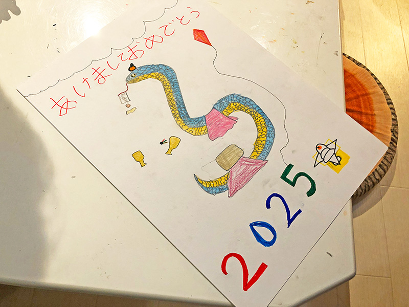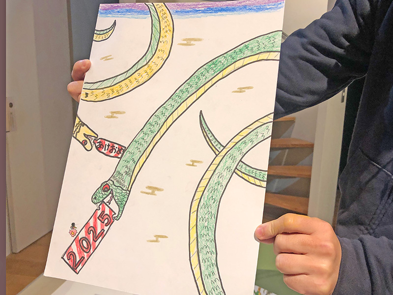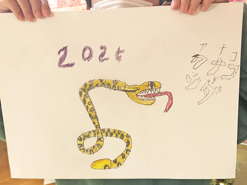 12月最後の週には来年の干支、蛇の絵を描きました。