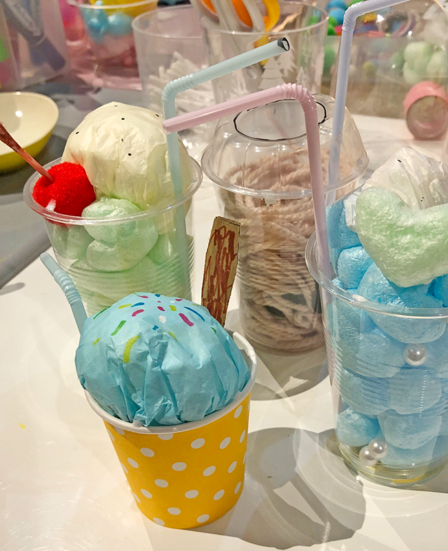 もうすぐバレンタインなので「お菓子」をテーマに工作をしました。