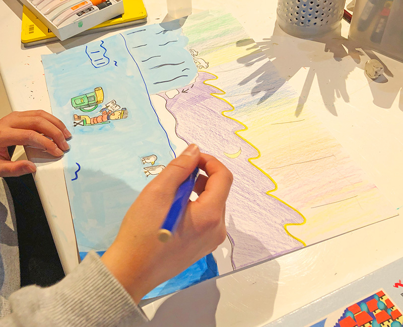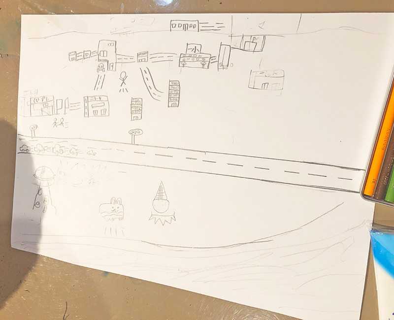 住みたい町 投稿日: 2025年4月22日2025年4月22日 投稿者: Yukio Kaoru こんにちは。こまこまアートです。 前回は「住みたい家」をテーマに絵を描きましたが今回は「住みたい町」もしくは「住みたいところ」をテーマに絵を描きました。 どんな町になるかな〜 住んでみたいところ=「南極世界」「たまご世界」すごくいいね!みんな素敵な作品が描けましたね!