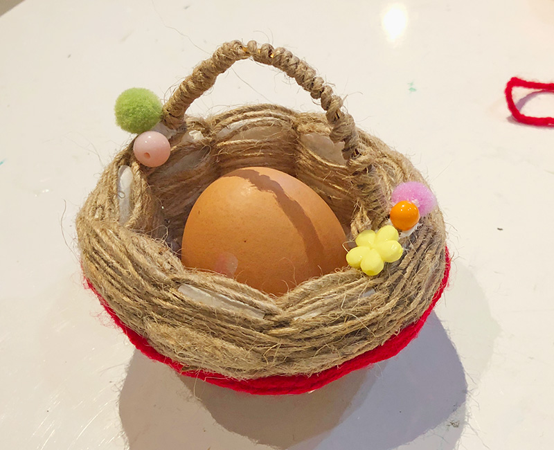 紙コップと毛糸を使ってオリジナルのカゴもつくりますよ〜。