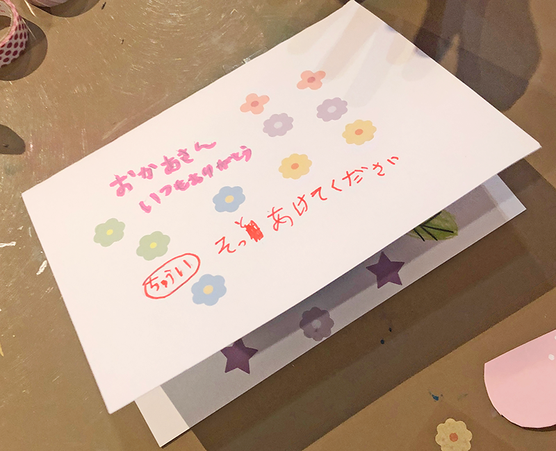 表紙には各自それぞれ、お母さんへのメッセージを書きます。