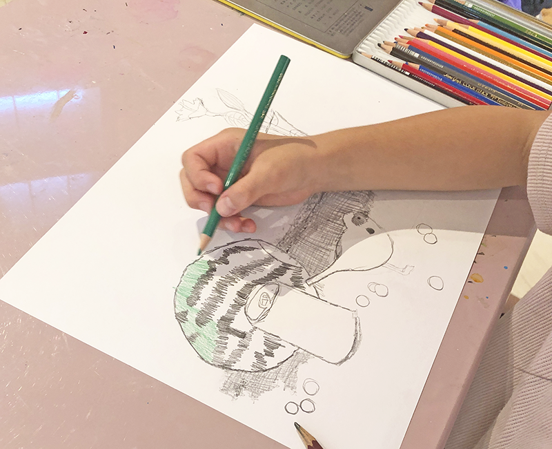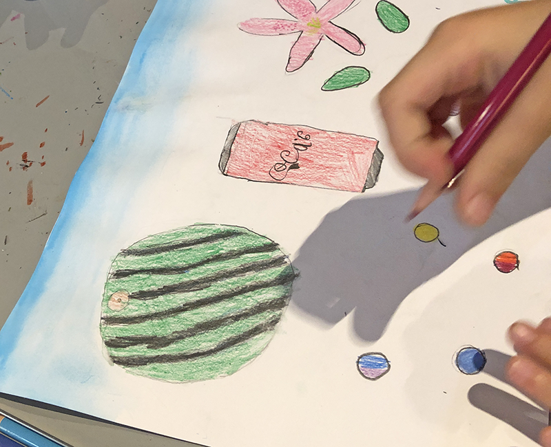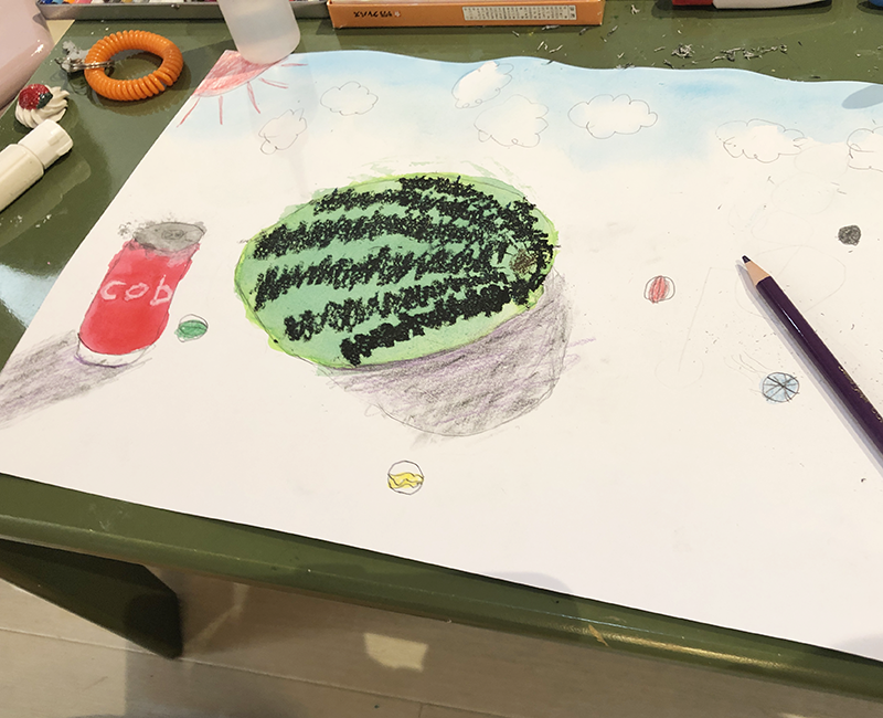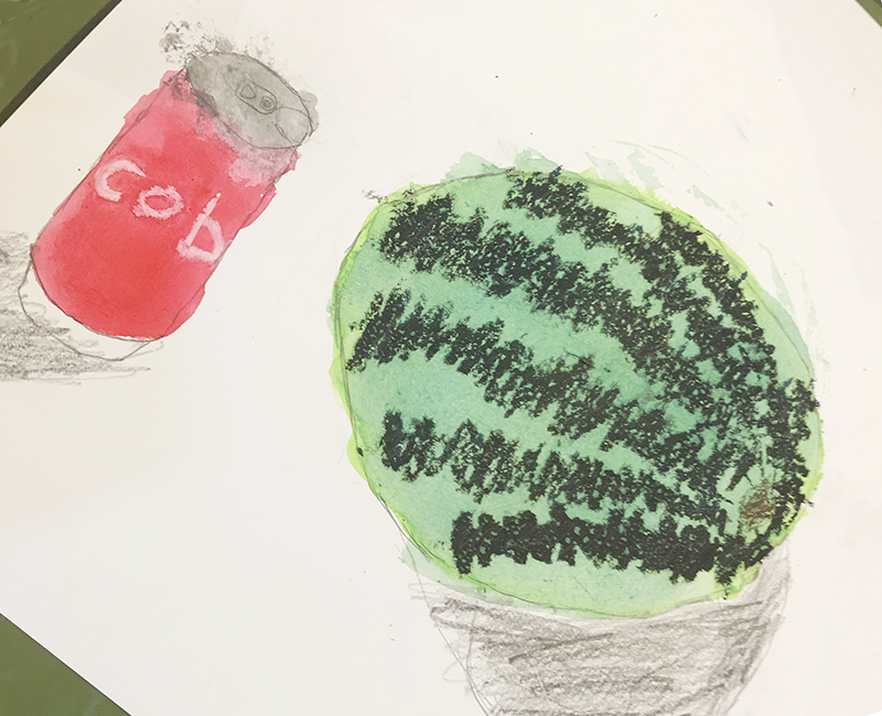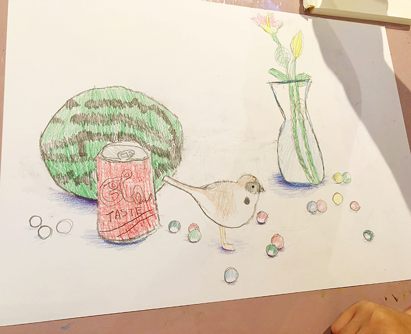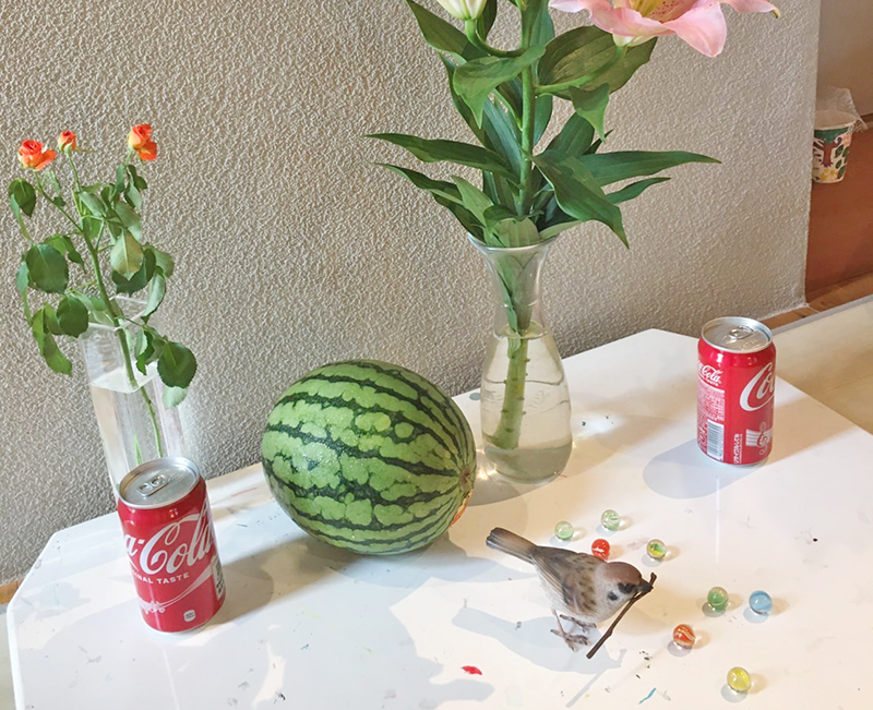 こんにちは。こまこまアートです。時々行っている「静物画」の課題です。夏らしいモチーフを集めました。