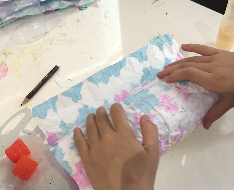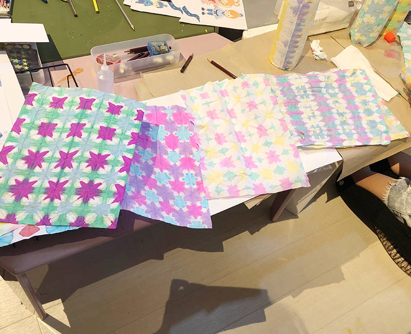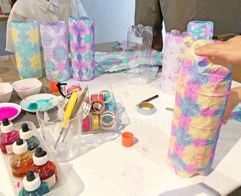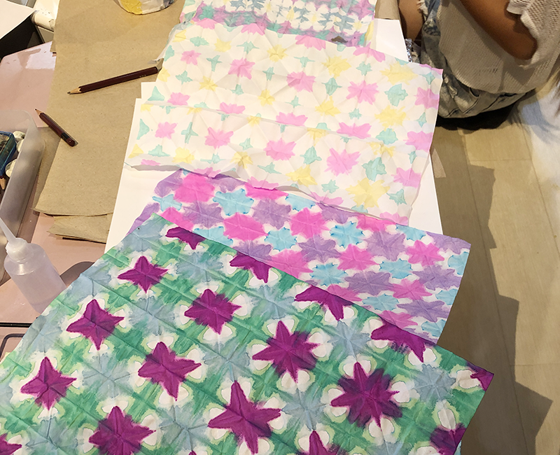 こんにちは。こまこまアートです。6月に行った「和紙の折染め」で作ったランタンです。